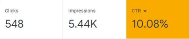 A high click through rate (clicks/impressions) is a great way to show your business that people are coming to your site from ads. Depending on business goals, the click through rate can be upwards of 10%! Industry average is around 4%.
